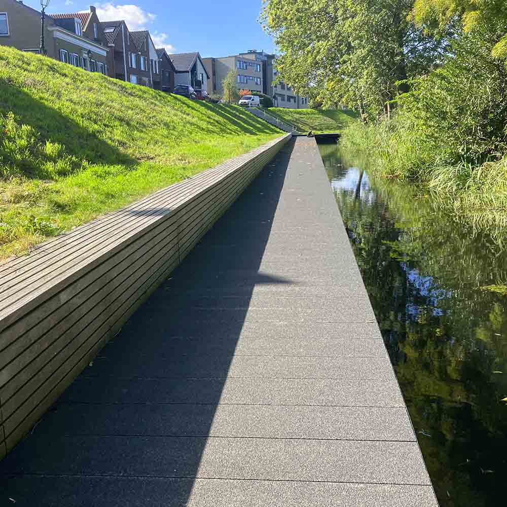 Zur Verbesserung der Lebensqualität und des kulturhistorischen Anblicks des geschützten Stadt- und Dorfbildes von Capelle aan den IJssel entschied sich der Bauherr für den Bau eines neuen GFK-Spaziergänger- und Angelstegs. Die Tatsache, dass der Slotpark neben dem historischen Wassergraben auch nationale Denkmäler und monumentale Bäume beherbergt, machte dieses Neubauprojekt zu einem außergewöhnlichen Auftrag. Für den Spaziergängersteg, der auch als Angelsteg genutzt wird, empfahlen wir für das gewünschte Erscheinungsbild unseren GFK-Brückenbelag 256.40.