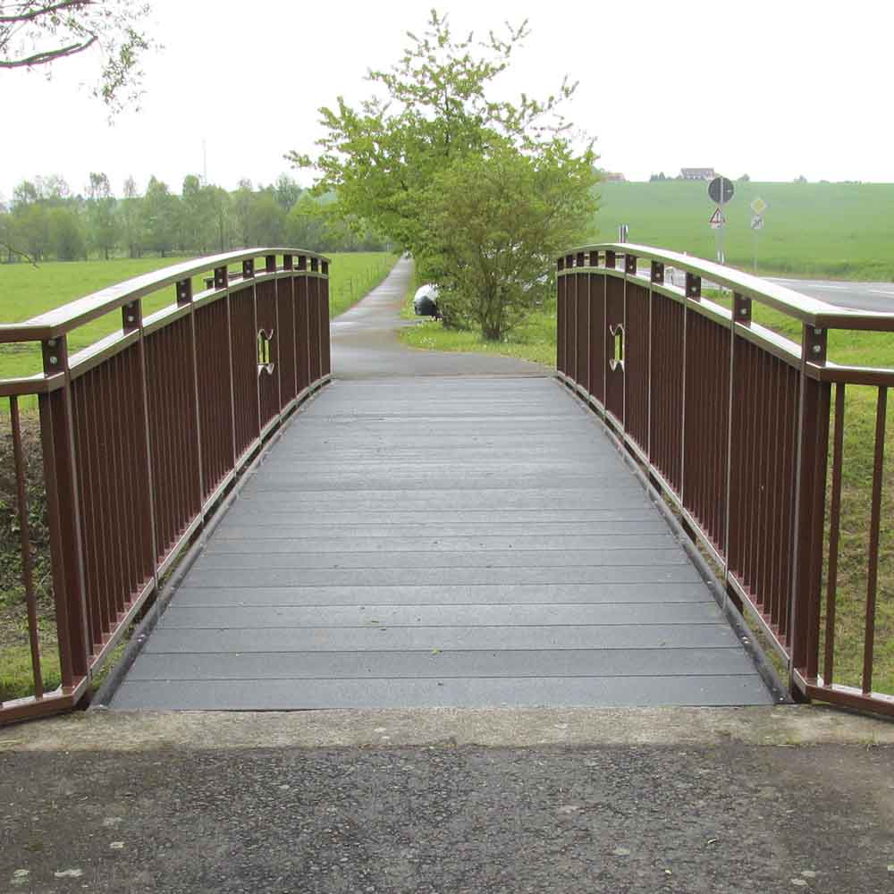 De houten brug constructie van deze fietsbrug in Berka Werra in Duitsland was aan het einde van zijn levensduur. Gemeente Werra-Suhl-Tal besloot de fietsbrug niet te renoveren en liet de houten constructie verwijderen. Een nieuwbouw constructie van staal met een GVK Brugdek voor deze fietsbrug was gewenst. Omdat de betonnen landhoofden in goede staat verkeerden, werden deze hergebruikt voor de nieuwbouw fietsbrug. Met zo’n 30m2 een relatief klein nieuwbouwproject, maar wel zeer belangrijk. Deze nieuwe fietsbrug fungeert namelijk als belangrijke fietsverbinding tussen twee gebieden langs een doorgaande weg.